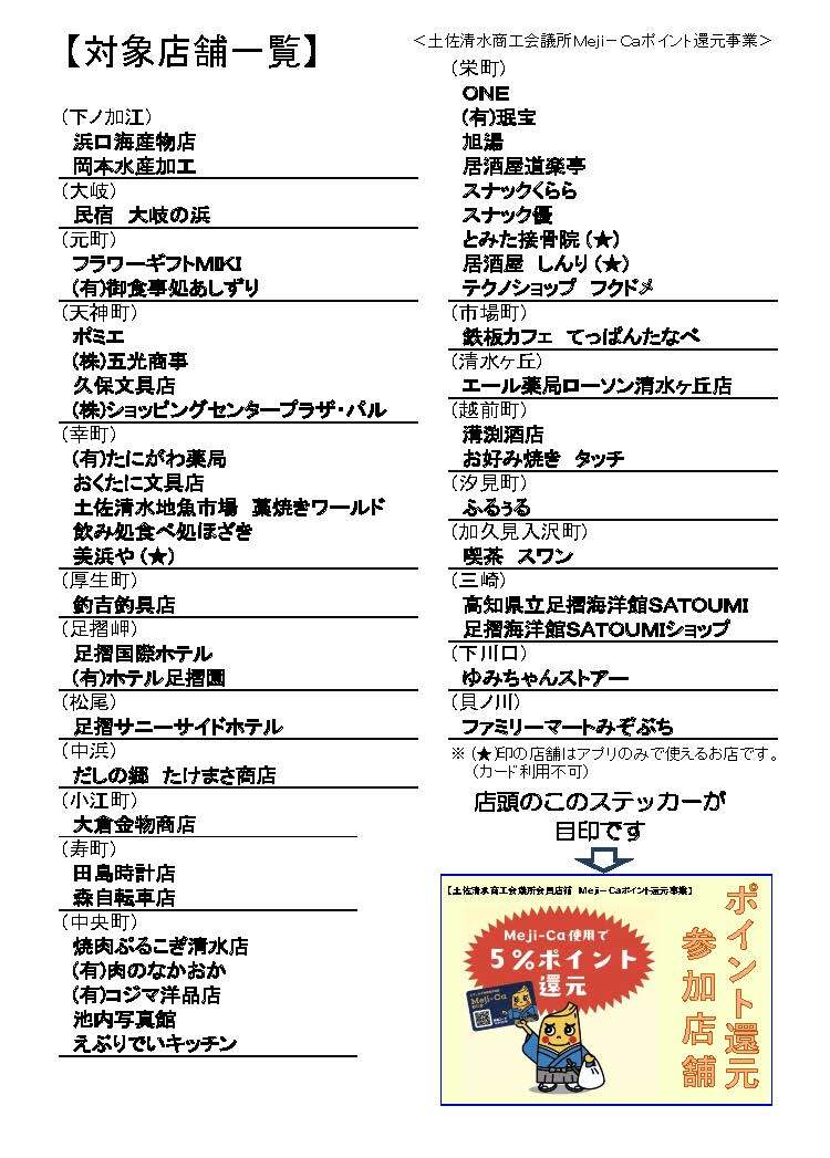 土佐清水商工会議所主催Meji-Ca5%ポイント還元キャンペーン(第3回)
