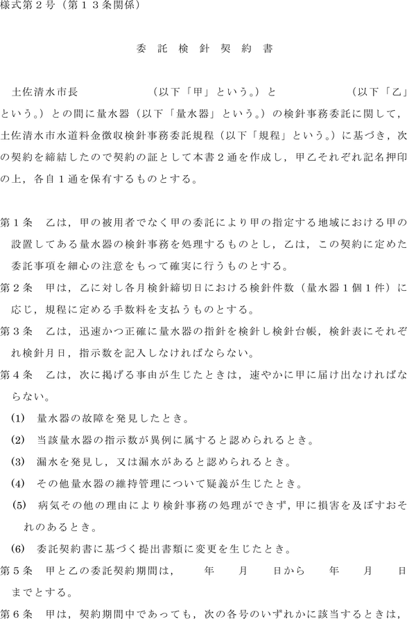 様式第2号)を作成し,量水器の検針事務を委託することができる。