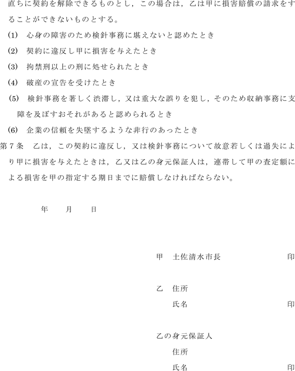 第18条 市長は,検針員が次の各号に掲げる事項に該当するに至つた場合は,解約するものとする。