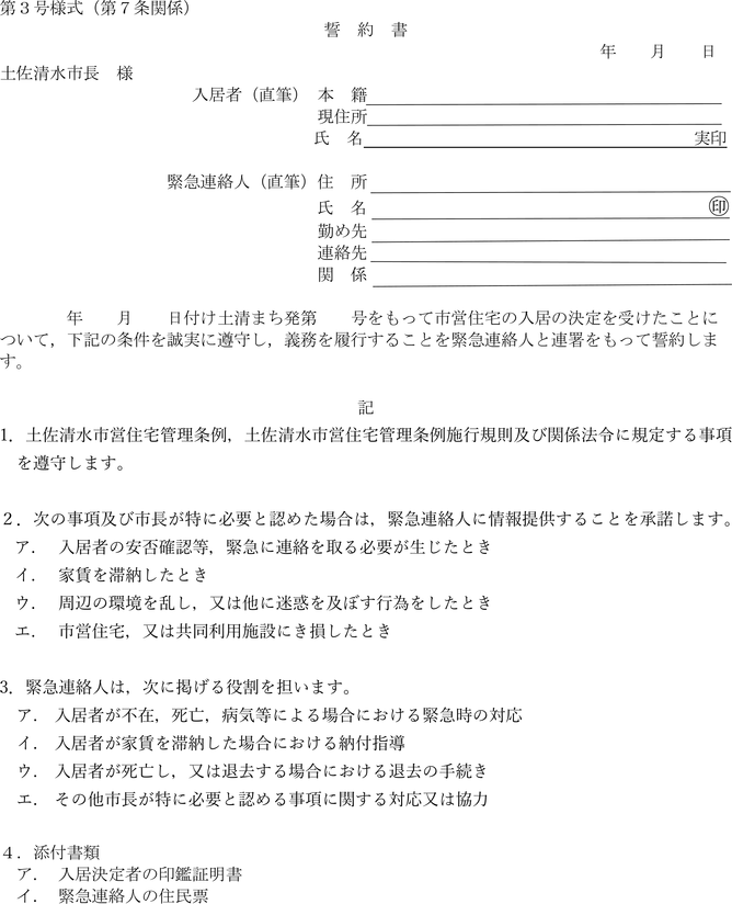 土佐清水市営住宅管理条例施行規則