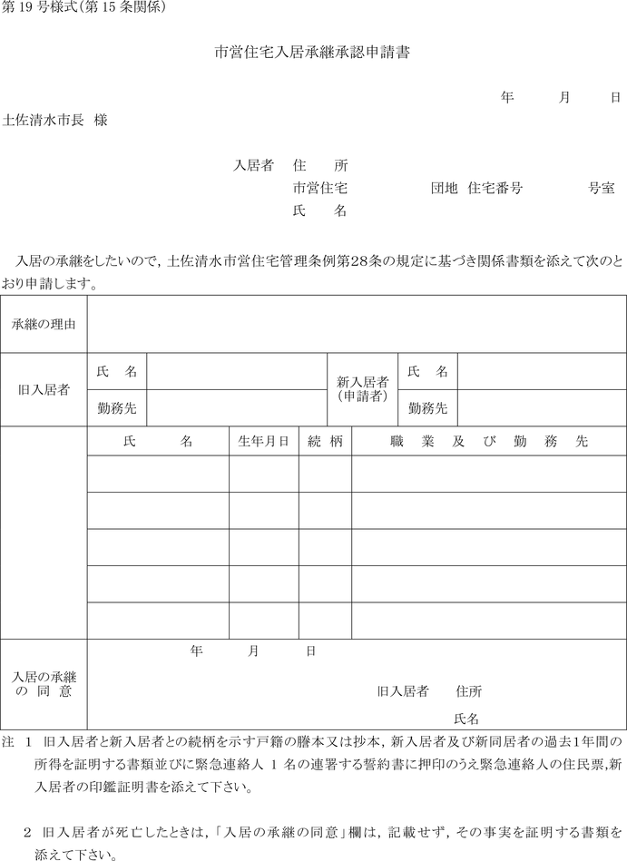 別記第19号様式による市営住宅入居承継承認申請書を市長に提出しなければならない。