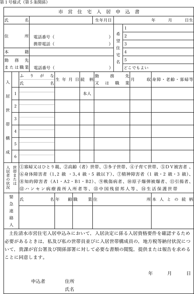 第5条 条例第8条第1項の入居の申込み(次項において「入居の申込み」という。)をしようとする者は,
