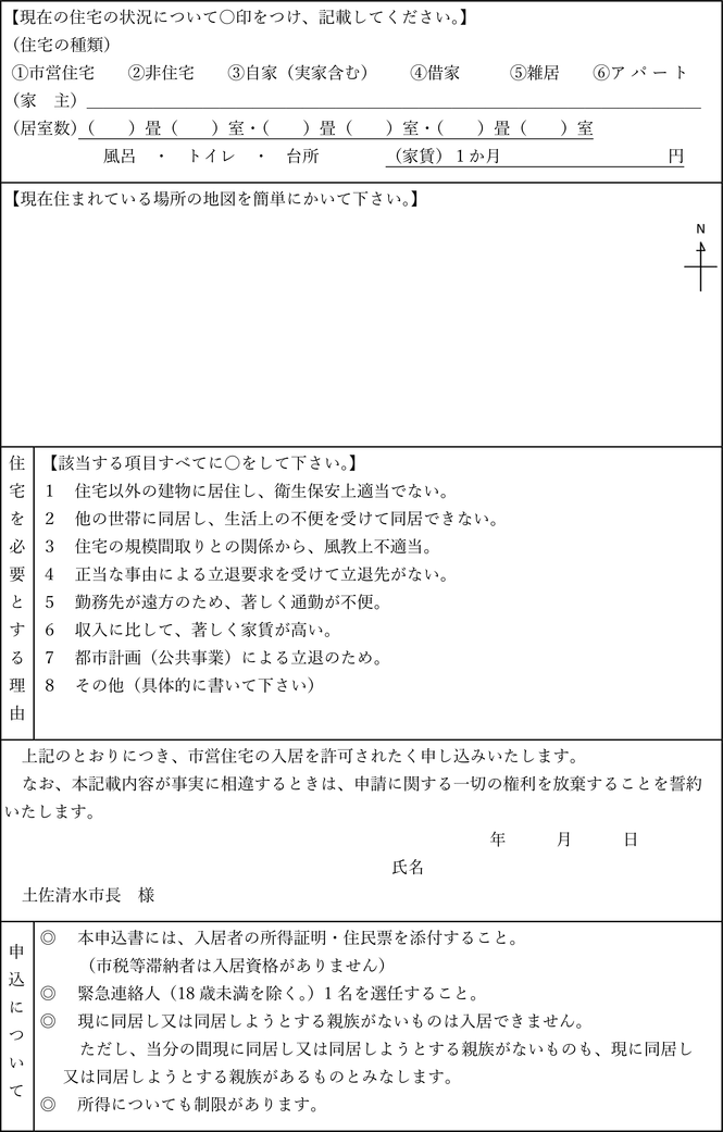 別記第1号様式による市営住宅入居申込書を市長に提出しなければならない。