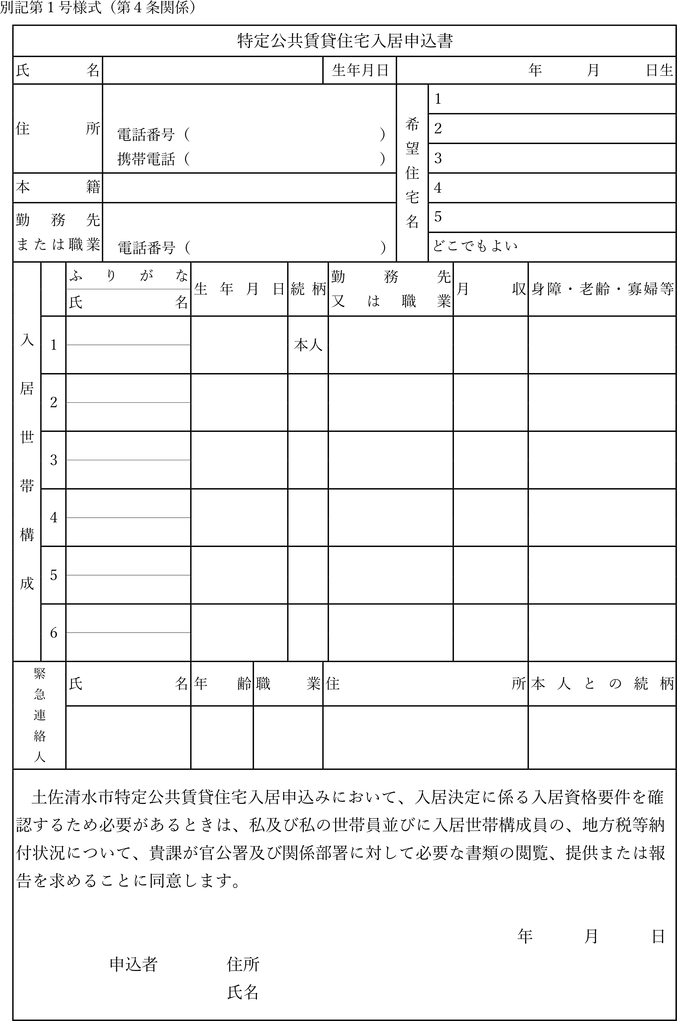 第4条 条例第6条第1項の入居の申込みをしようとする者は,