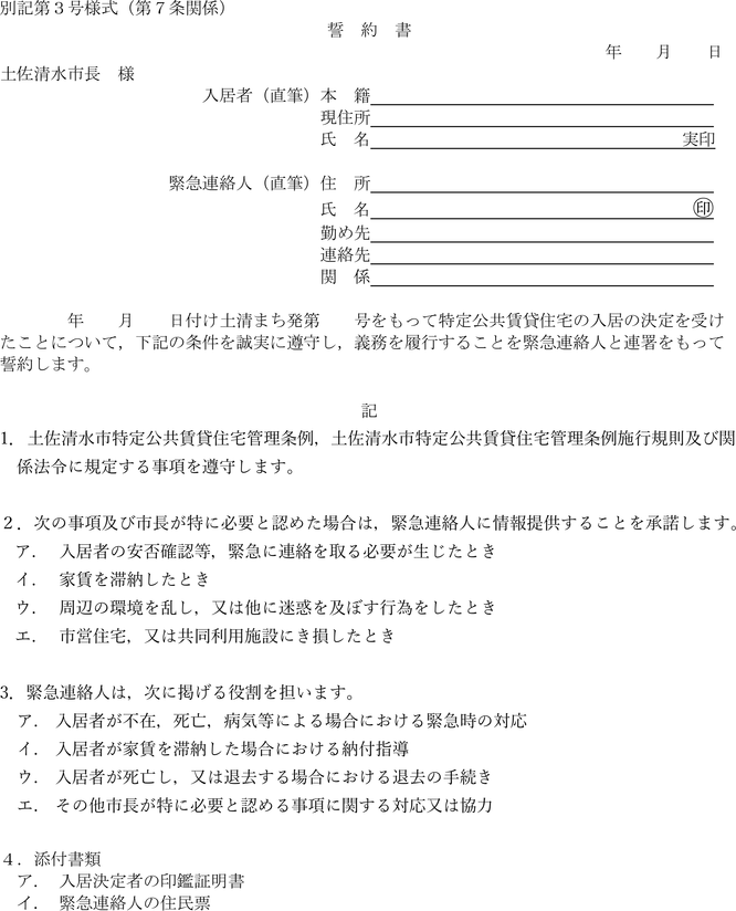 土佐清水市特定公共賃貸住宅管理条例施行規則