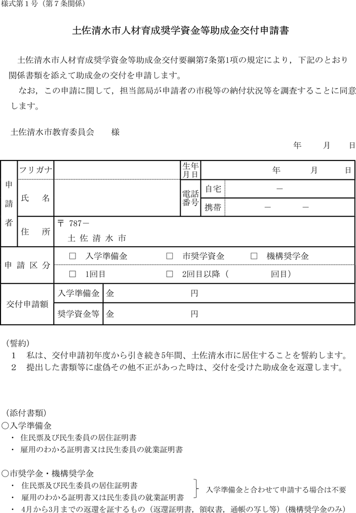 土佐清水市人材育成奨学資金等助成金交付要綱